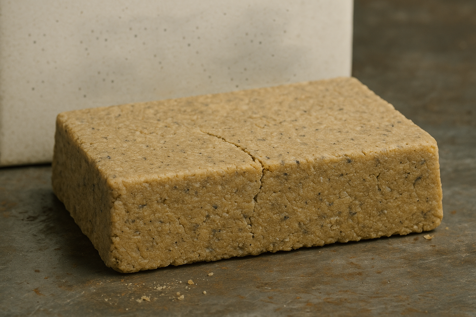 • Consistency: Dense, pliable mass with a slight oily surface sheen. Rehydrated powder forms a gelatinous slab similar to firm tofu or soft clay.